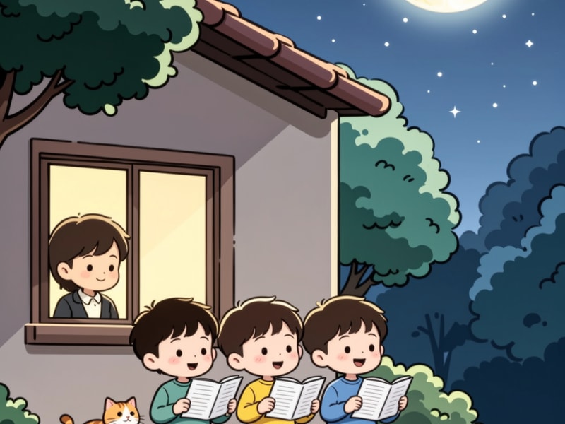 他们又轻轻念了一遍: 床前明月光,疑是地上霜。 举头望明月,低头思故乡。