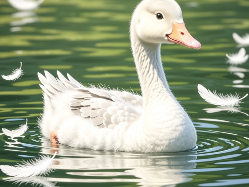 绿绿的水面上,白白的羽毛像小云朵,轻轻地飘呀飘。