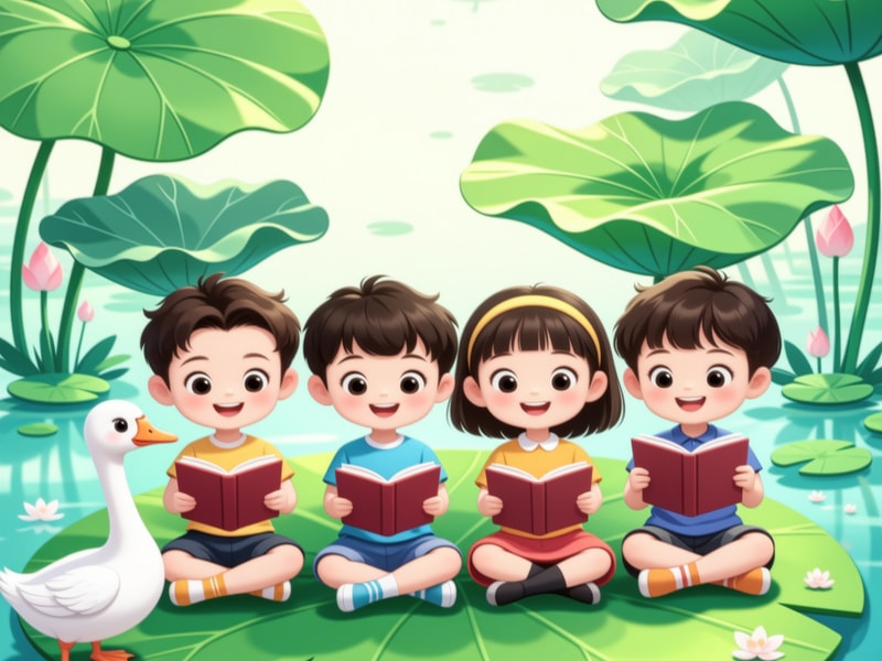 鹅鹅鹅,曲项向天歌。白毛浮绿水,红掌拨清波。一起轻轻念,我们记住啦!