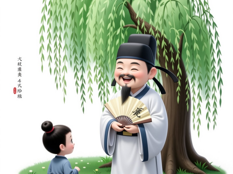 写《咏柳》的人叫贺知章。他看见春风把柳树梳得好漂亮,就写下这首小诗。