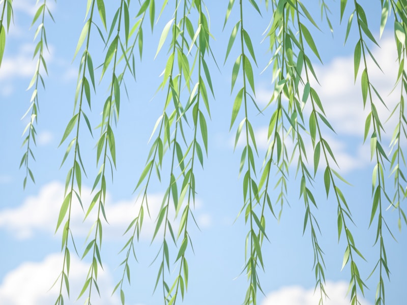 “万条垂下绿丝绦”,说的是很多很多根细细长长的柳条,样子像绿丝带,真好看。