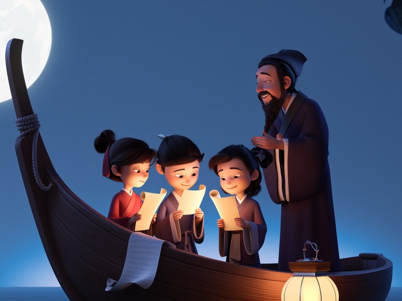 他们轻轻念了一遍: 京口瓜洲一水间,钟山只隔数重山。 春风又绿江南岸,明月何时照我还。