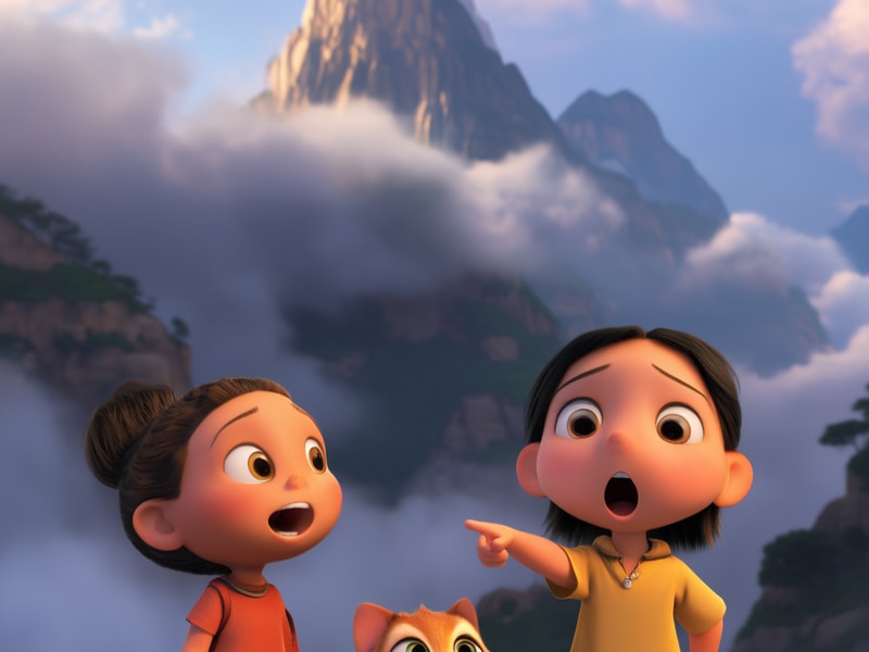 <Child mode="inline_text_zh" />惊叹地说:哇!黄山真的好高好大啊!那些山峰都藏在云雾里呢!