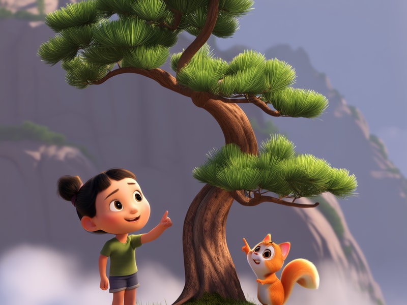 好奇地问:为什么黄山的松树长得这么特别呢?它们的枝干怎么都往一边长?