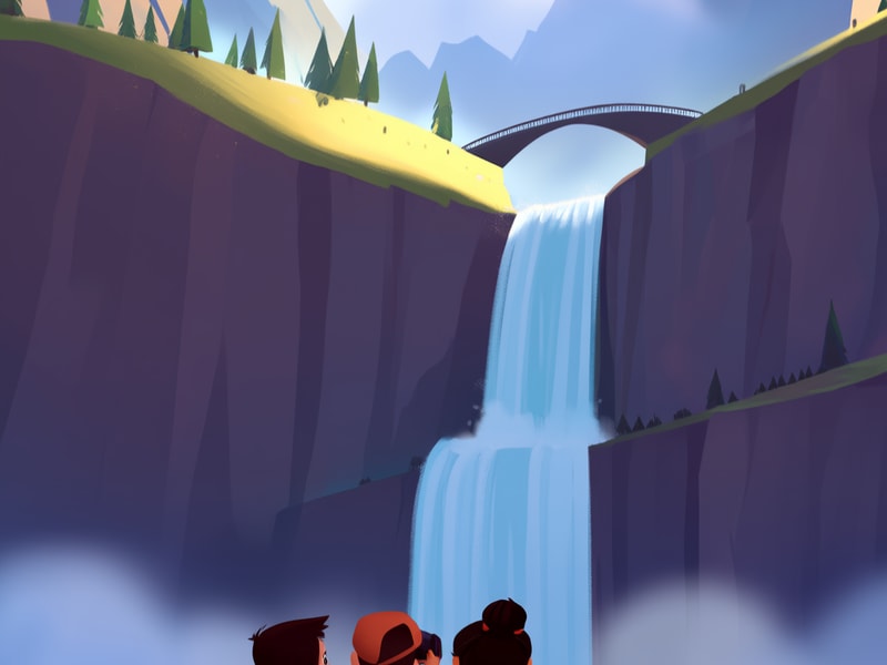 <Child mode="inline_text_zh" />兴奋地说:这就是庐山的三叠泉瀑布,李白就是在这里写下了《望庐山瀑布》!