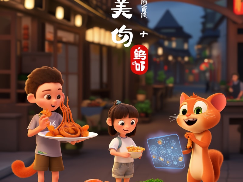 <Child mode="inline_text_zh" />说:青岛美食街有好多好吃的小吃,让我们来尝尝吧!