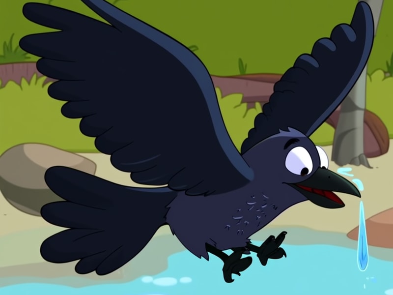 水升到了瓶口,乌鸦终于喝到水了,高兴地展开翅膀飞走了。