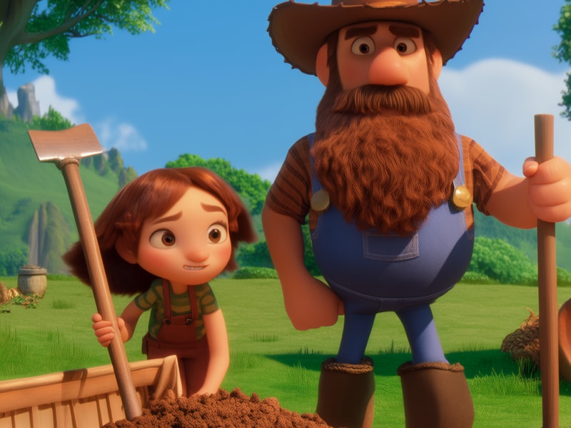 愚公和家人每天拿着锄头和畚箕,一点一点地挖山运土,虽然很辛苦但从未放弃。