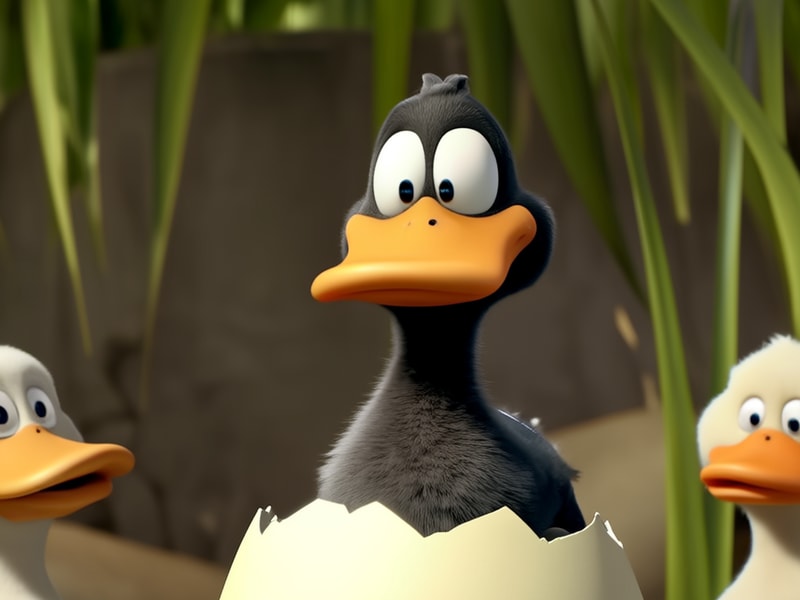 终于,最大的蛋也破壳了,但出来的小鸭子又大又丑,和其他小鸭子完全不一样。