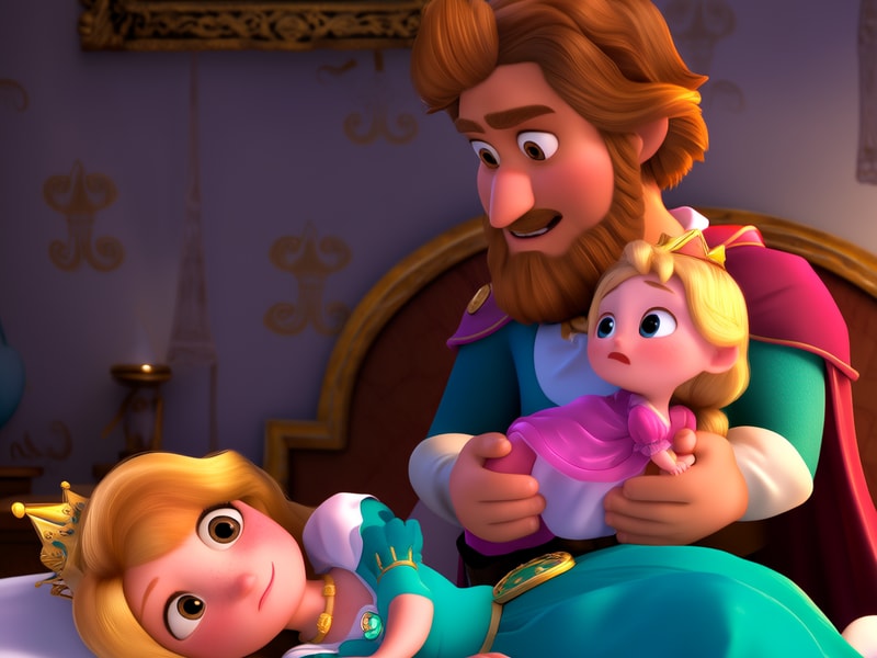 不久后,王后生下了一个美丽的女儿,取名叫白雪公主。但王后因为生产身体虚弱,没过多久就去世了,国王非常伤心。