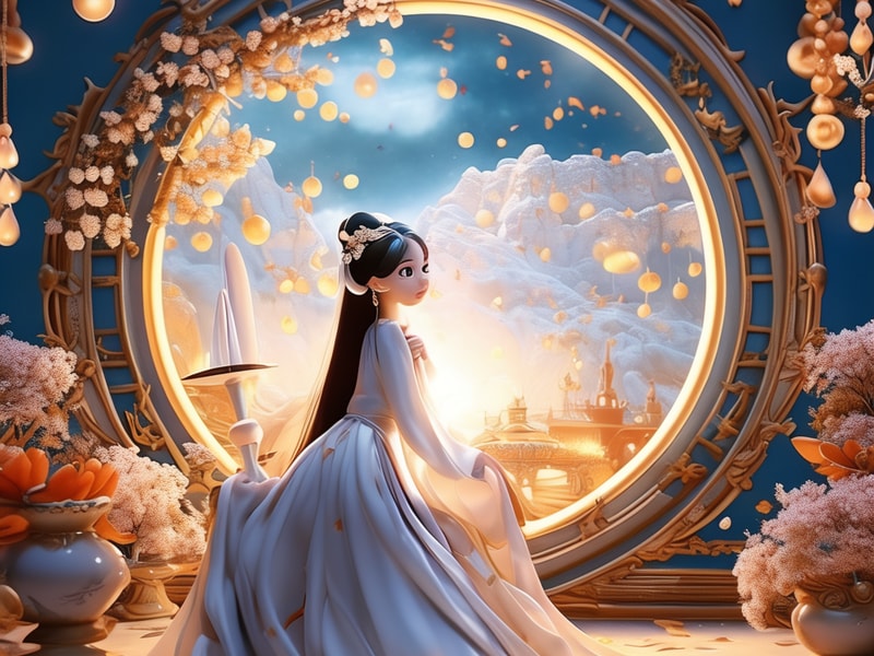 在月宫里,嫦娥并不孤单太久。有一只雪白的玉兔陪伴着她,每天在桂花树下捣药。嫦娥有时会跳舞,有时会弹琴,月宫里总是飘着优美的音乐声。但每当夜深人静时,她还是会想念地上的朋友们。