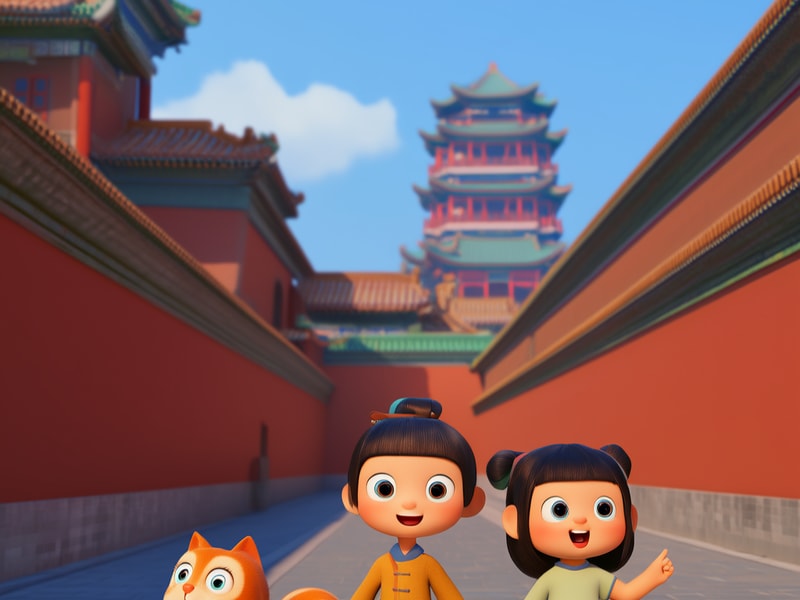 图书馆消失了!眼前是青砖灰瓦、红墙飞檐。他们来到了唐代,远处一座高楼巍然耸立。