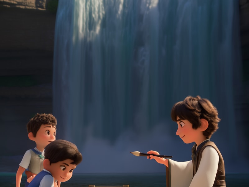 李白拿出纸笔,写下:"日照香炉生紫烟,遥看瀑布挂前川。飞流直下三千尺,疑是银河落九天。"